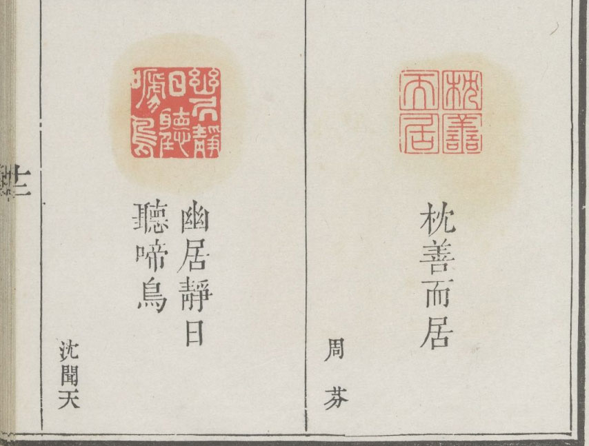 • 清代梁登庸篆《图章备考》(垂棘山房藏印)。全书共分六册(礼、乐、射、御、书、数),辑录六种:天保九如章、陋室铭图章、百美诗图章、百二甲子